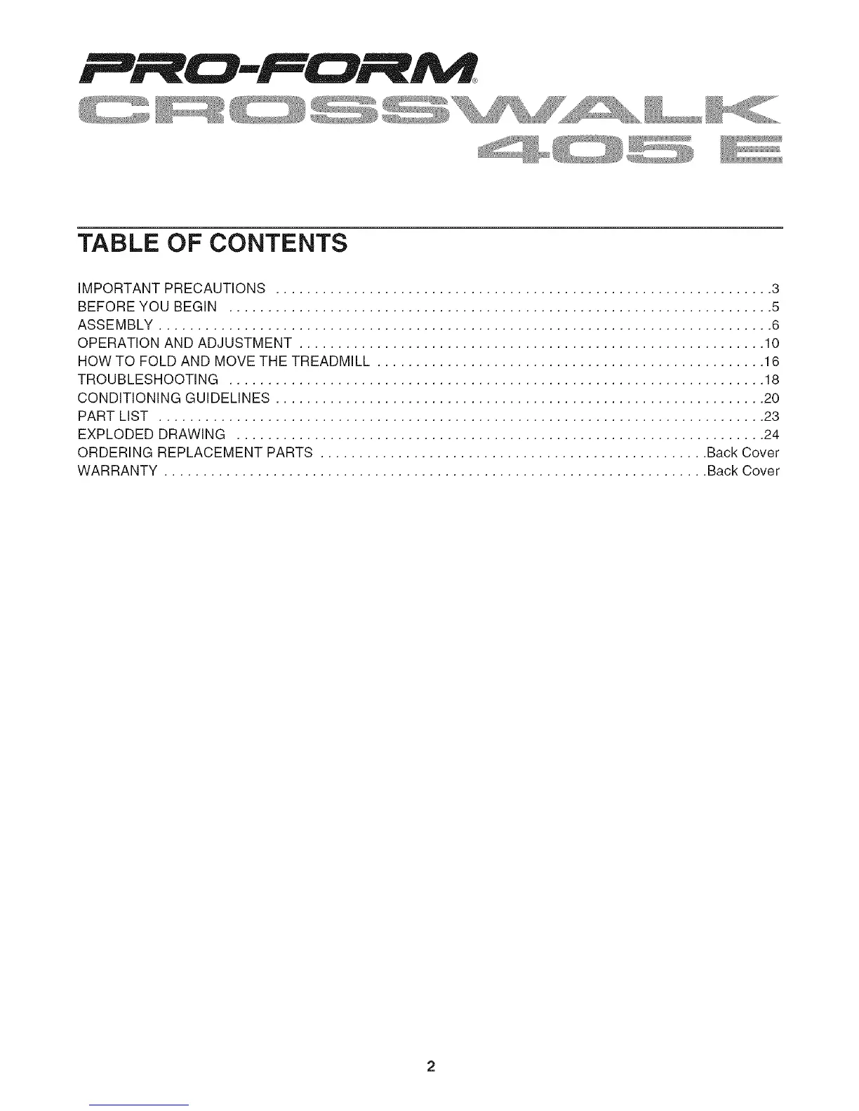 WARRANTY ...................................................................... Back Cover