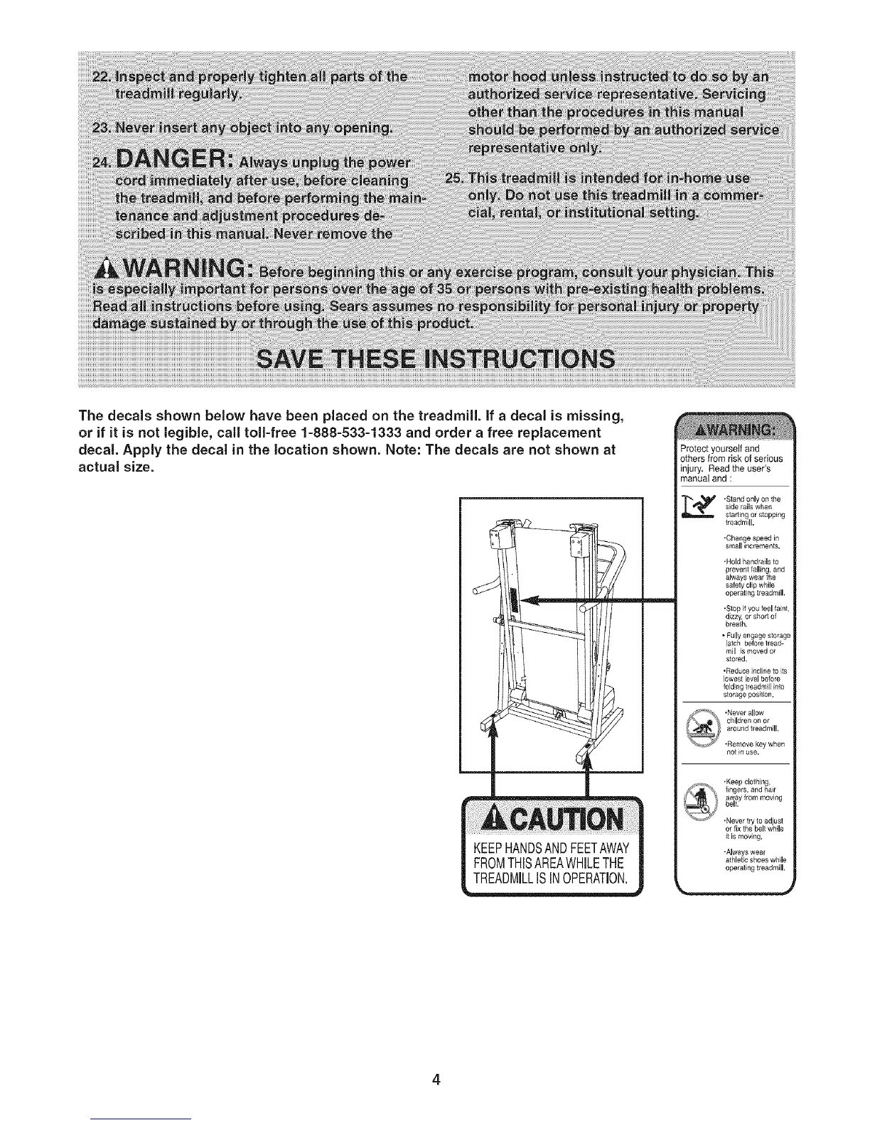 The decals shown below have been placed on the treadmill, if a decal is missing,