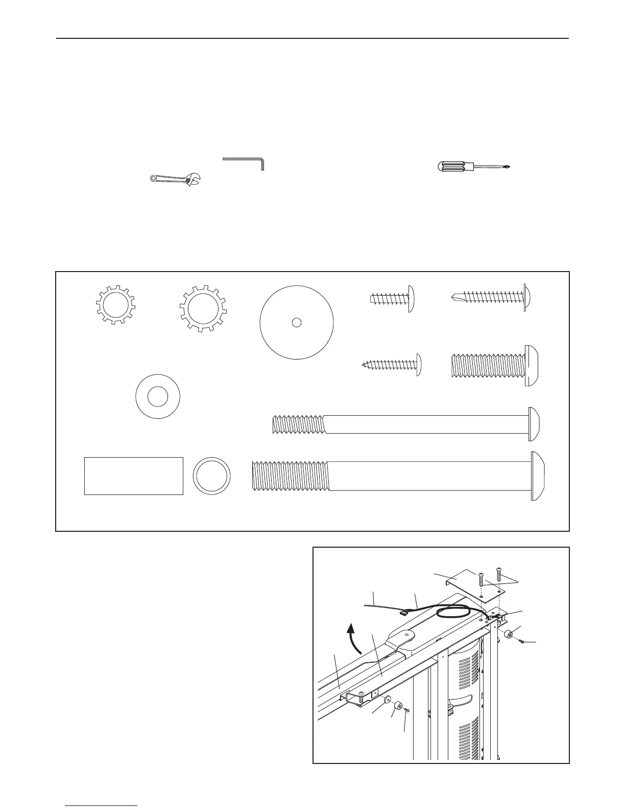 Use the drawings below to identify the assembly hardware. The number in parentheses below each drawing is