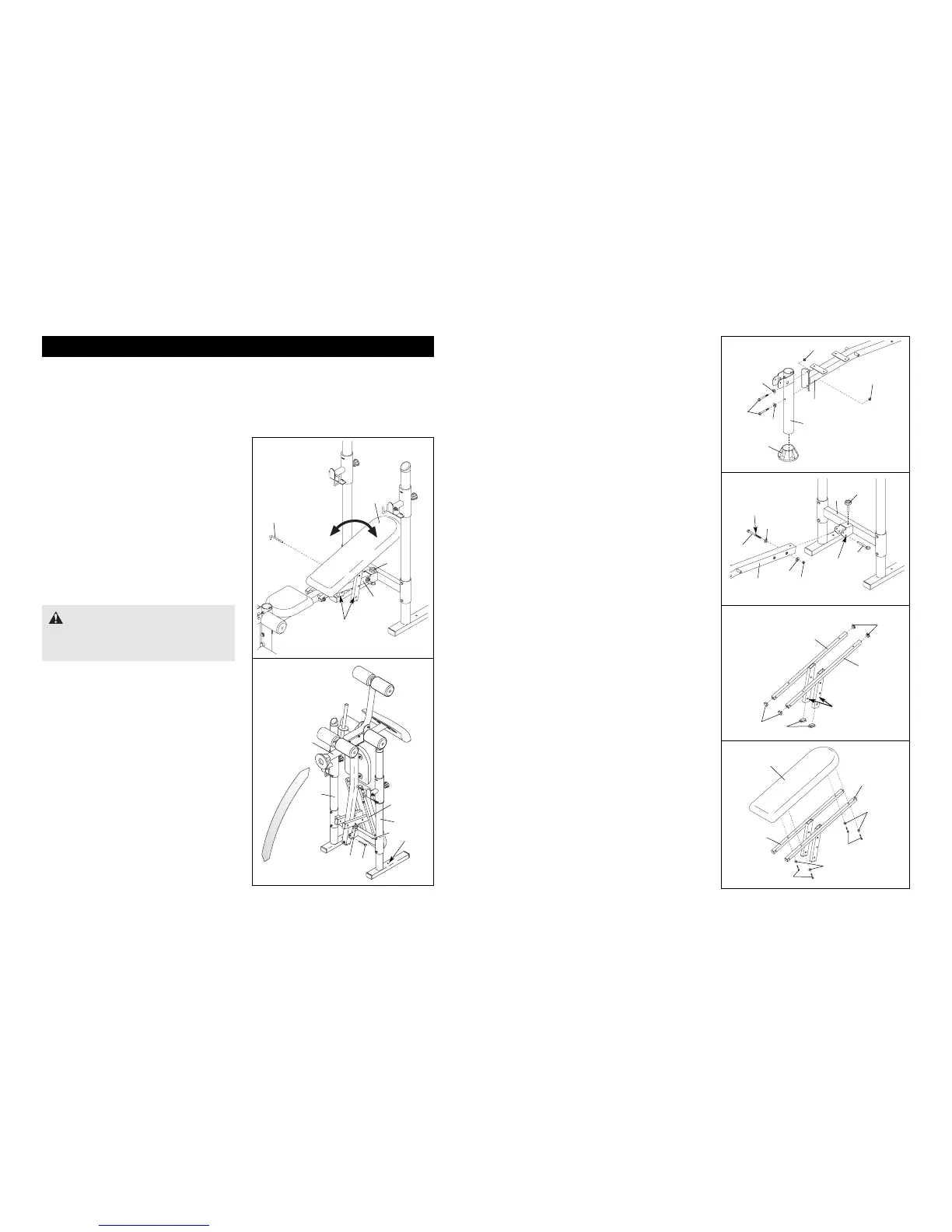Make sure all parts are properly tightened each time you use the weight bench. Replace any worn parts immediate-