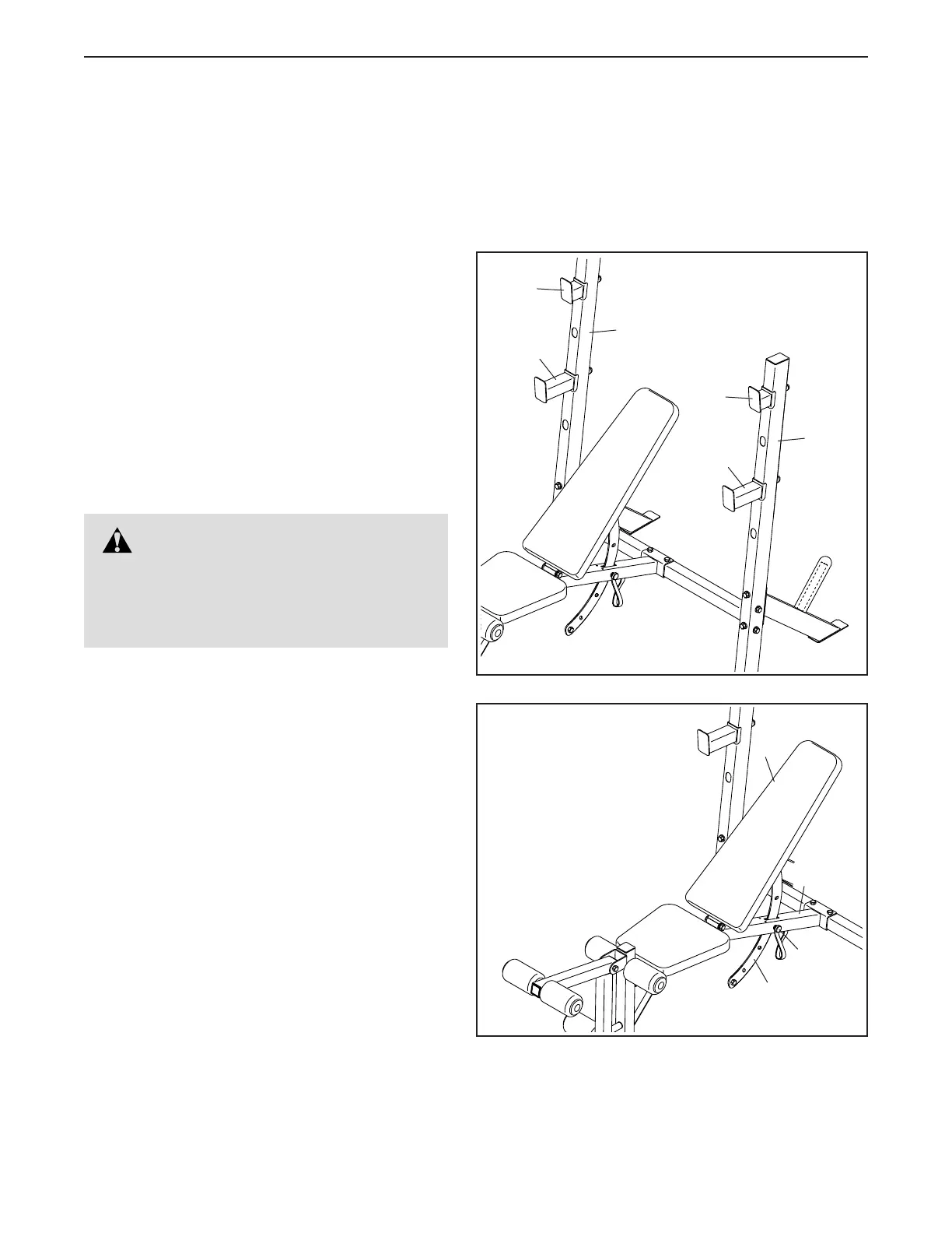 The steps below explain how the weight bench can be adjusted. See the accompanying exercise guide to see the