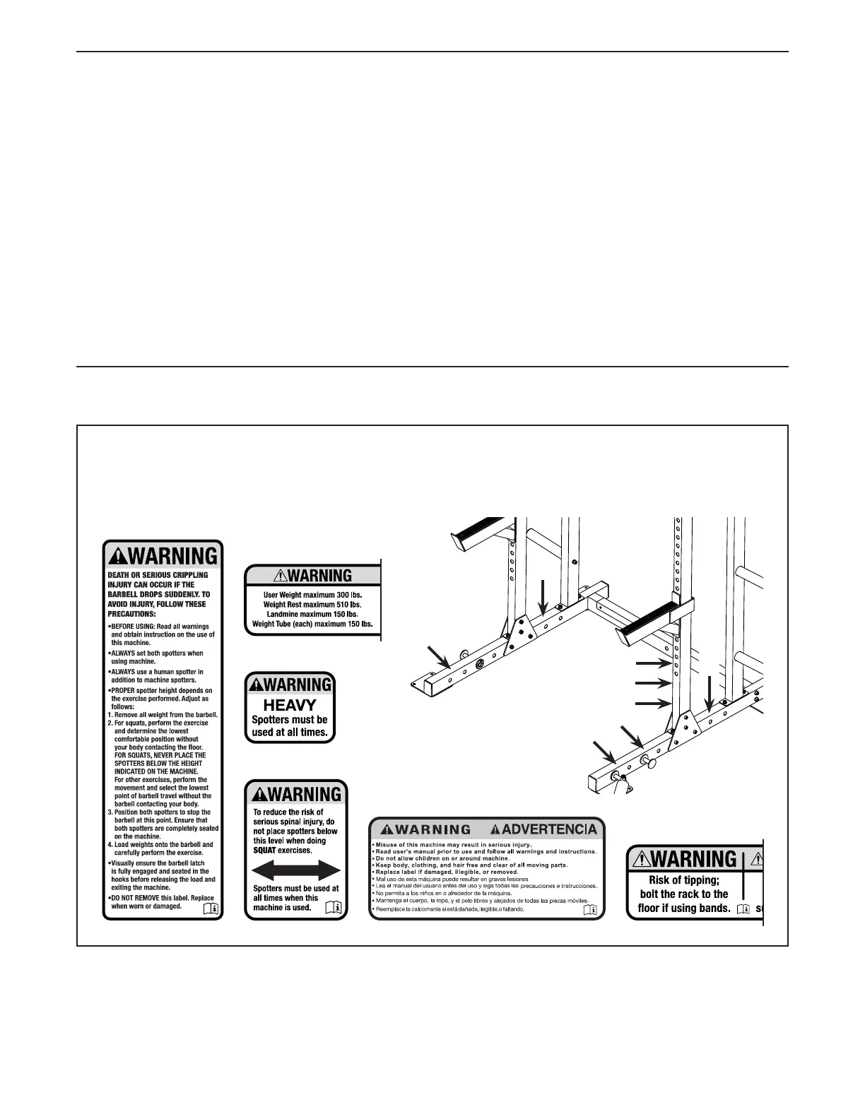 The decals shown here have been applied to the rack. If a decal is missing or illegible, call the