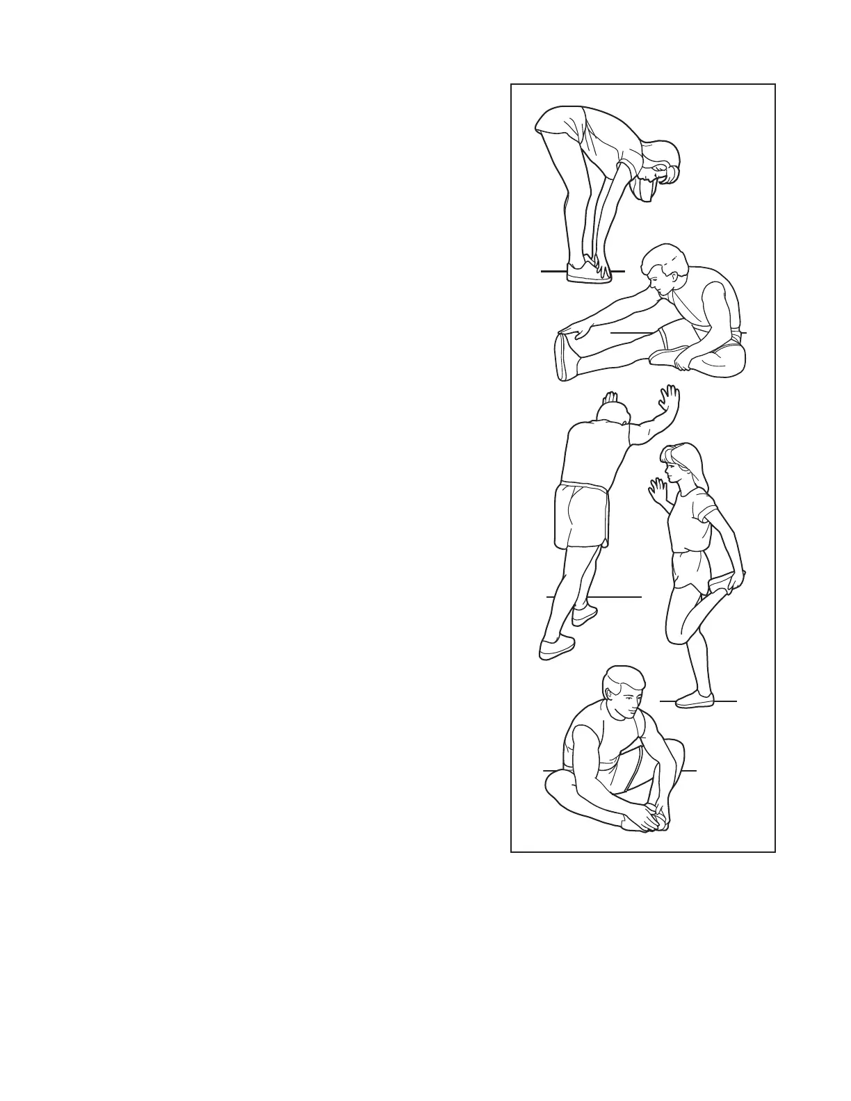 The correct form for several basic stretches is shown at the right.