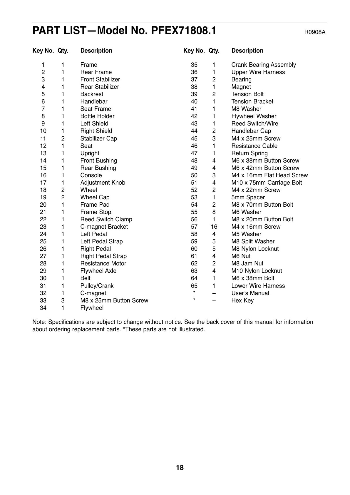 PART LIST—Model No. PFEX71808.1 R0908A