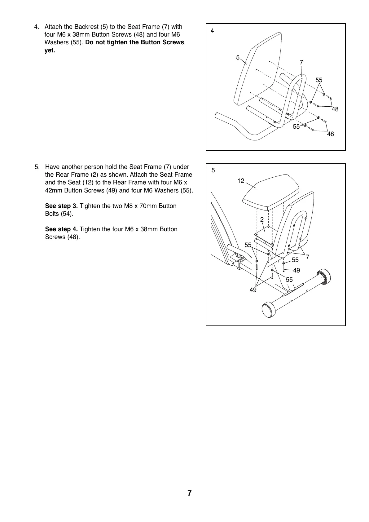 . Attach the Backrest (5) to the Seat Frame (7) with