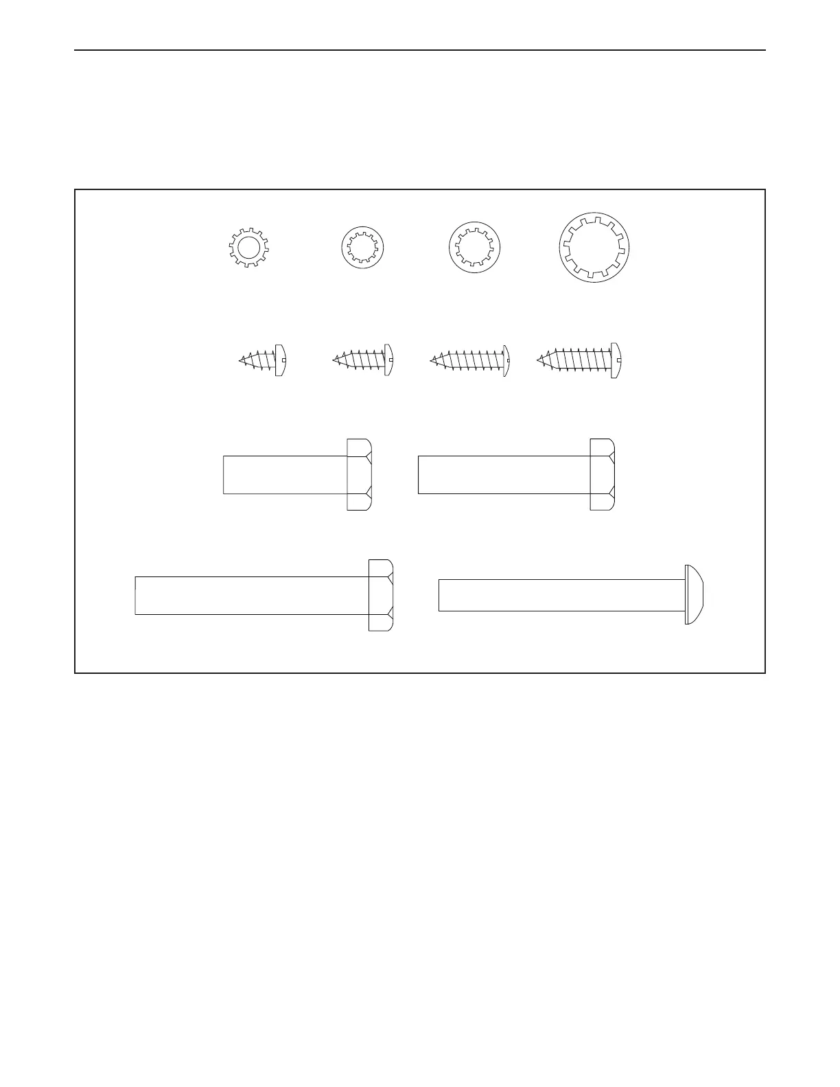 Use the drawings below to identify small parts used for assembly. The number in parentheses below each draw-