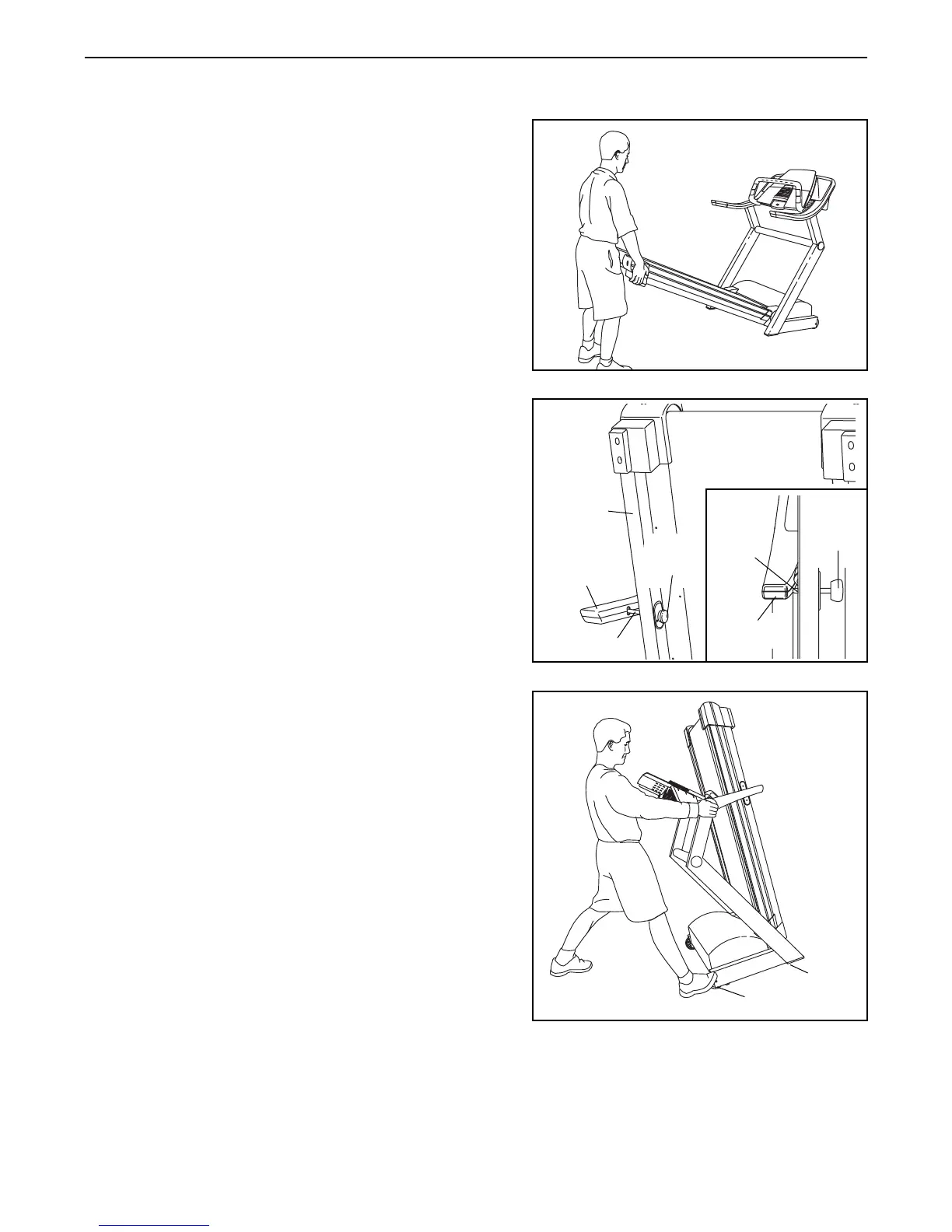 2. See drawing 1 above. Hold the treadmill firmly with both hands, and lower the treadmill to the floor. To de-
