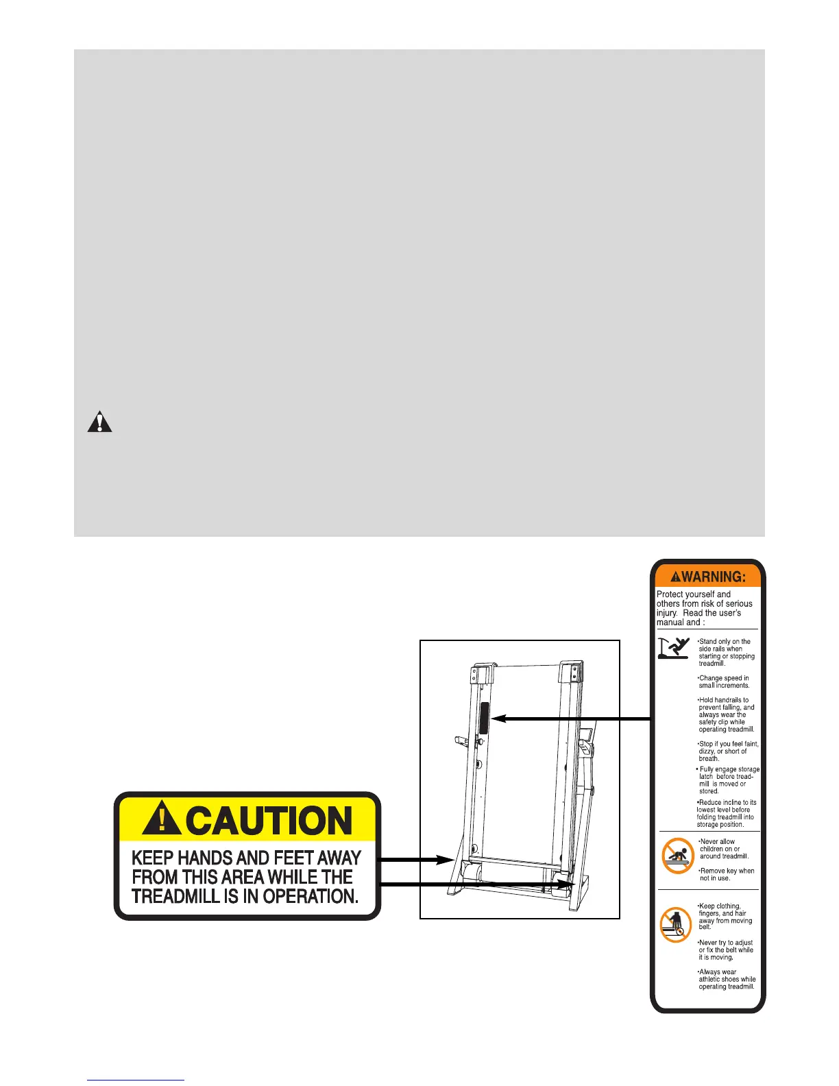 The decals shown below have been placed on your treadmill. If a decal is missing,