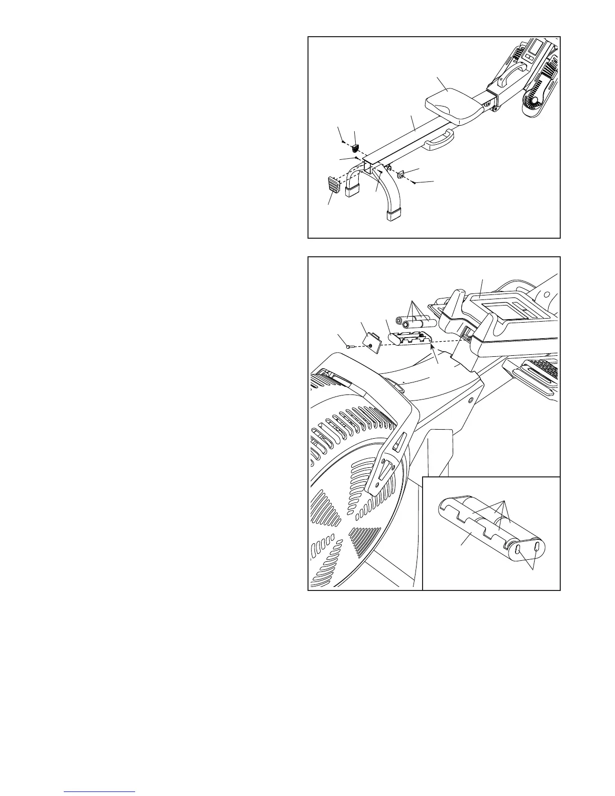 7. Make sure that all parts are properly tightened before you use the rower. Extra parts may be included.