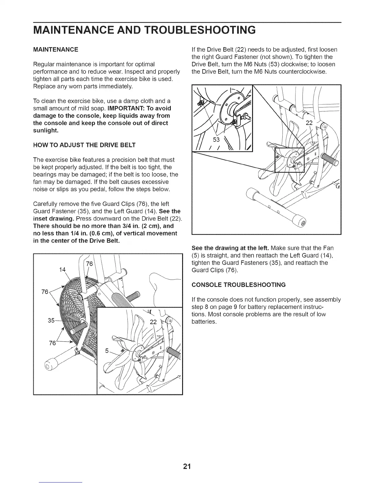 If the Drive Belt (22) needs to be adjusted, first loosen