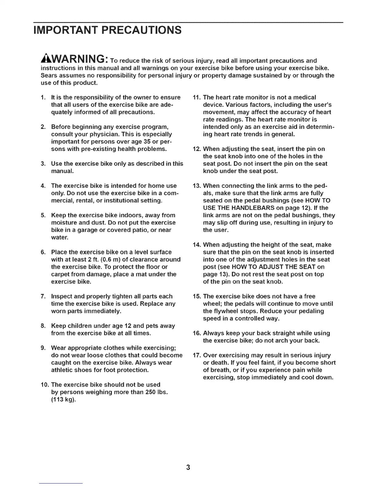 instructions in this manual and all warnings on your exercise bike before using your exercise bike.