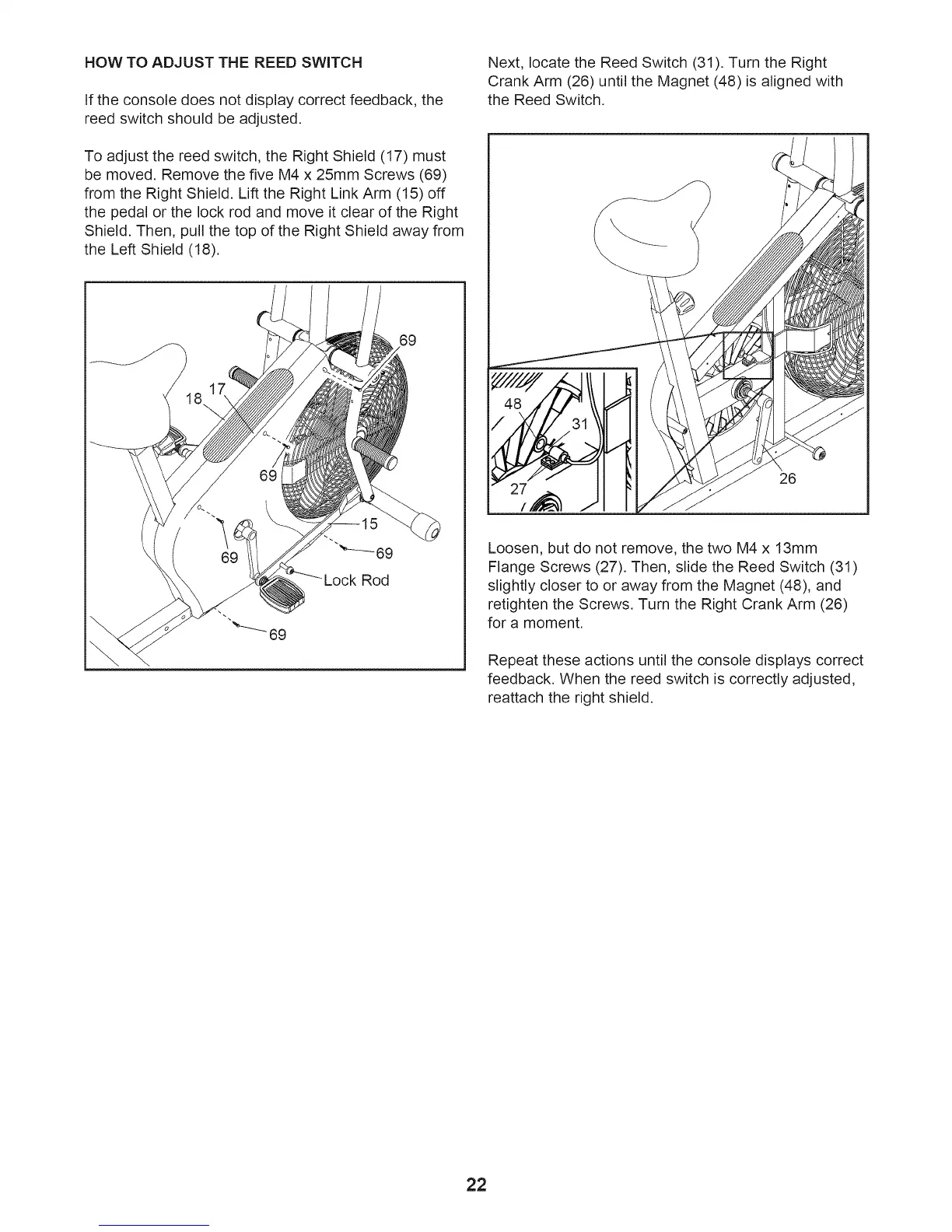 Crank Arm (26) until the Magnet (48) is aligned with