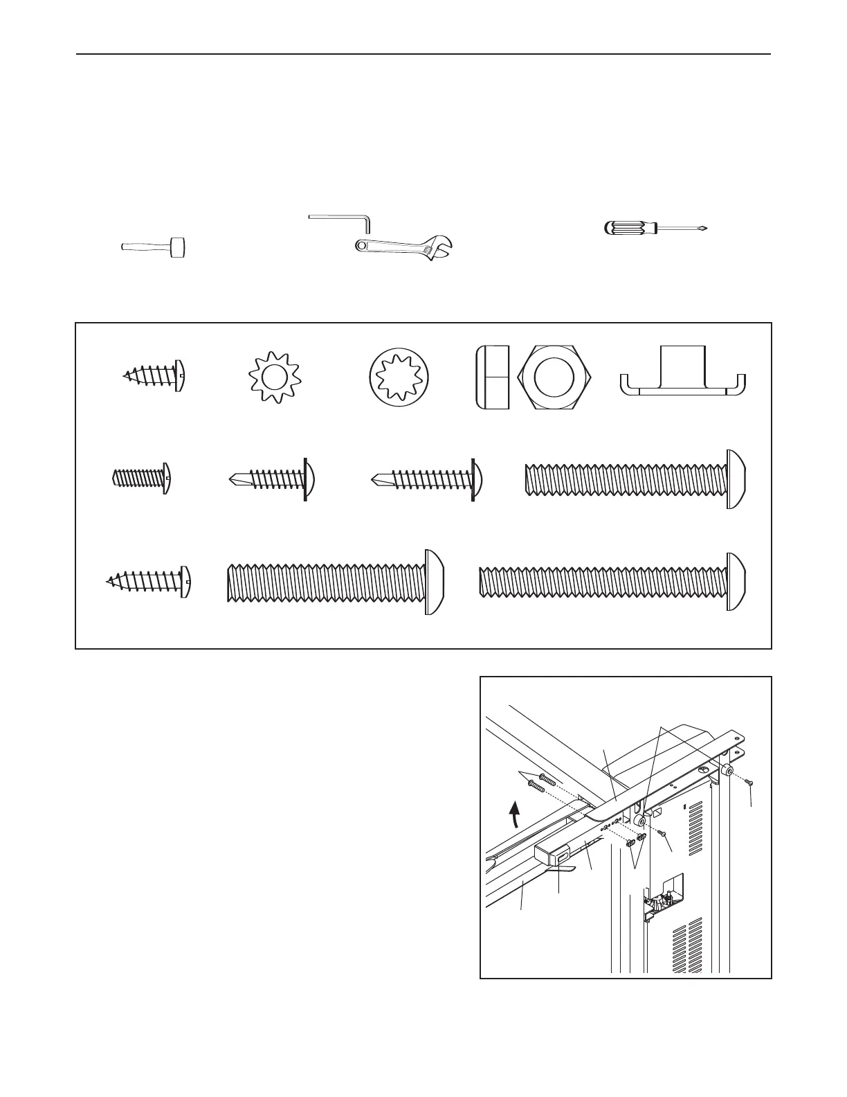 For help identifying assembly hardware, see the drawings below. If a part is not in the parts bag, first check
