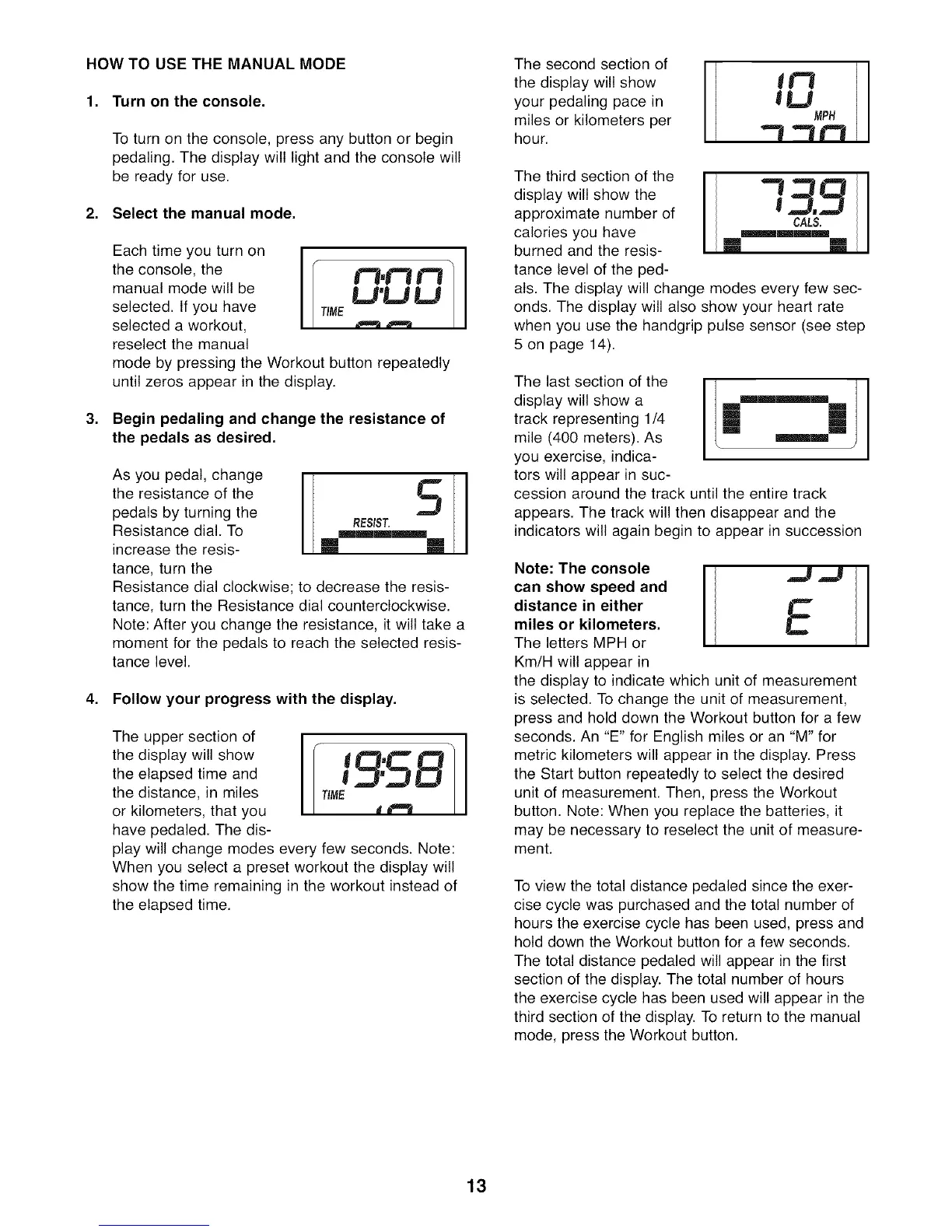 pedaling. The display will light and the console will