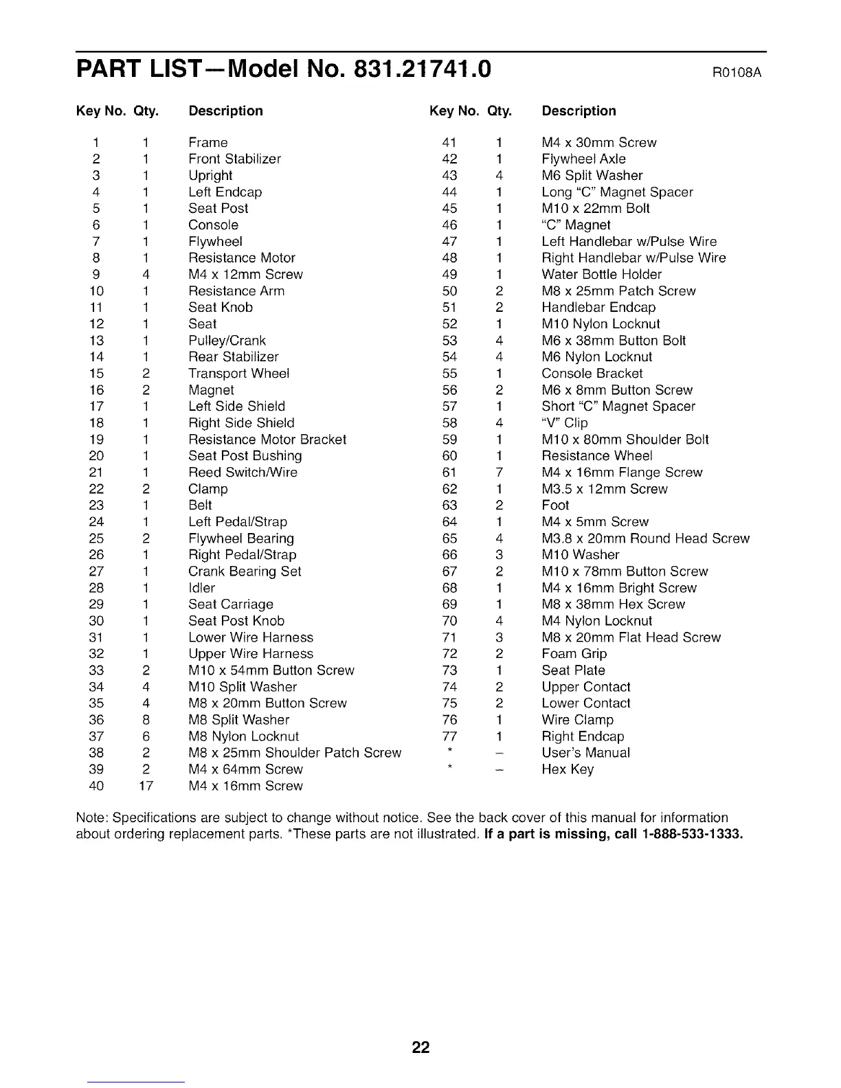 about ordering replacement parts. *These parts are not illustrated. If a part is missing, call 1-888-533-1333.