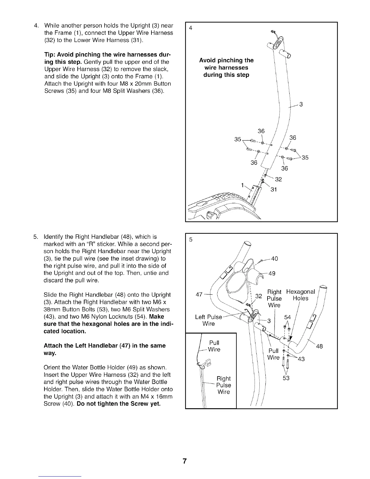 Tip: Avoid pinching the wire harnesses dur-