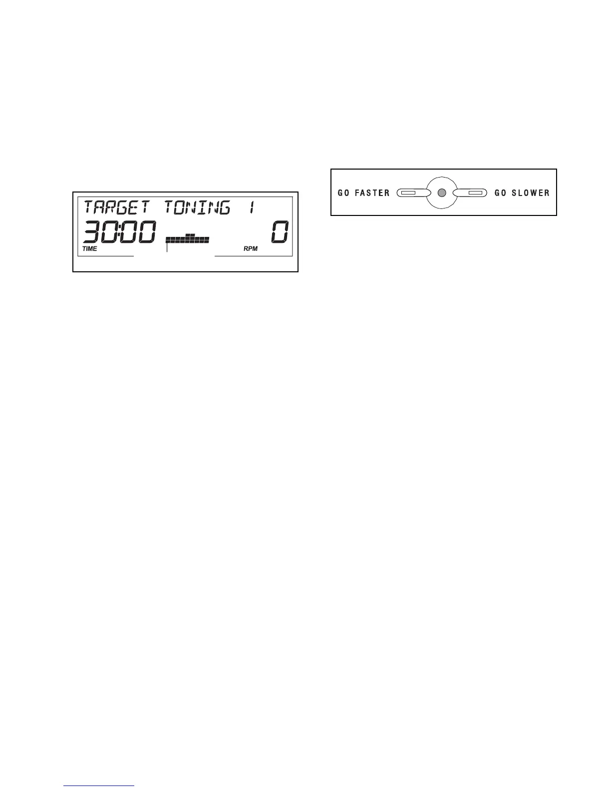 GET TONING 1 or TARGET TONING 2 appear in