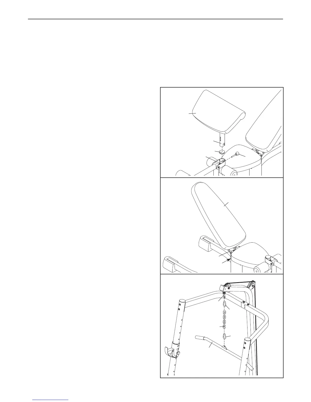 ake sure all parts are properly tightened each time the weight bench is used. Replace any worn parts immediate-