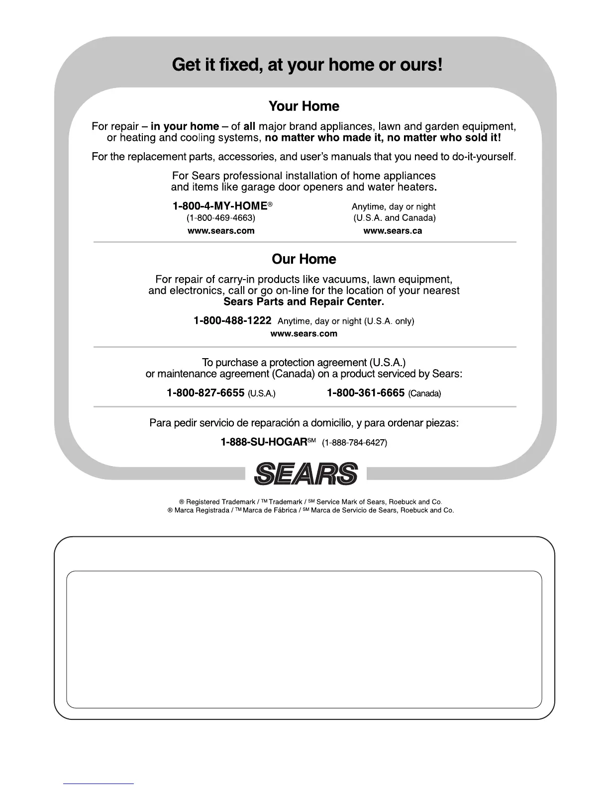 Sears Treadmill Exerciser, contact the nearest Sears Service Center throughout the United States and