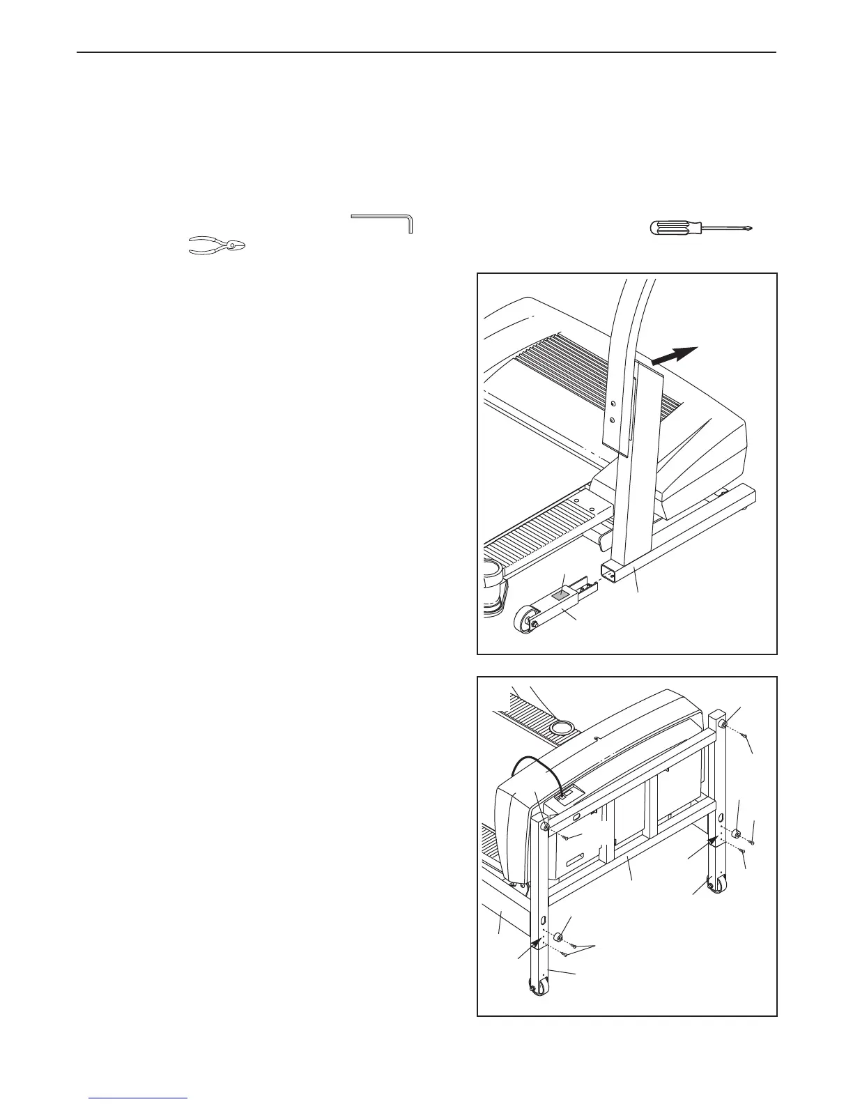 dispose of the packing materials until assembly is completed. Note: The underside of the treadmill walking belt is