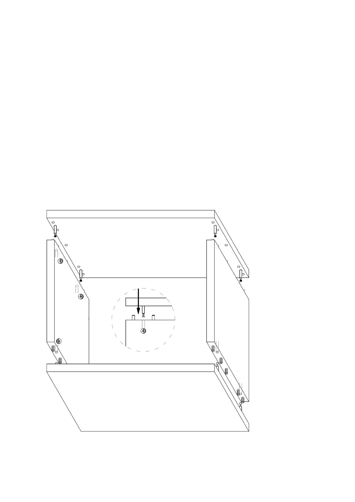 Place the metal- and wooden dowels according to the picture below. The Cam Lock Nuts have to be placed