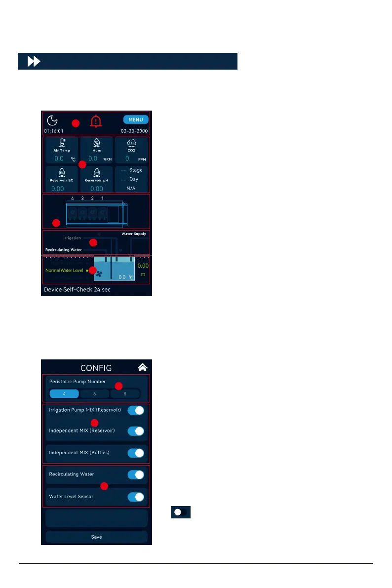 Click the day and night icon several times on the home page to enter the conguration inteace,