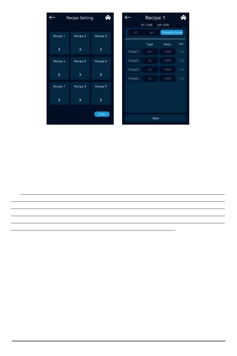 Click Recipe to enter the recipe setting inteace, and click Peristaltic pump to set the working