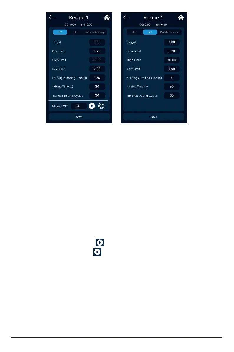 EC Deadband: Set the oset of automatic liquid addition after the EC reaches or exceeds the