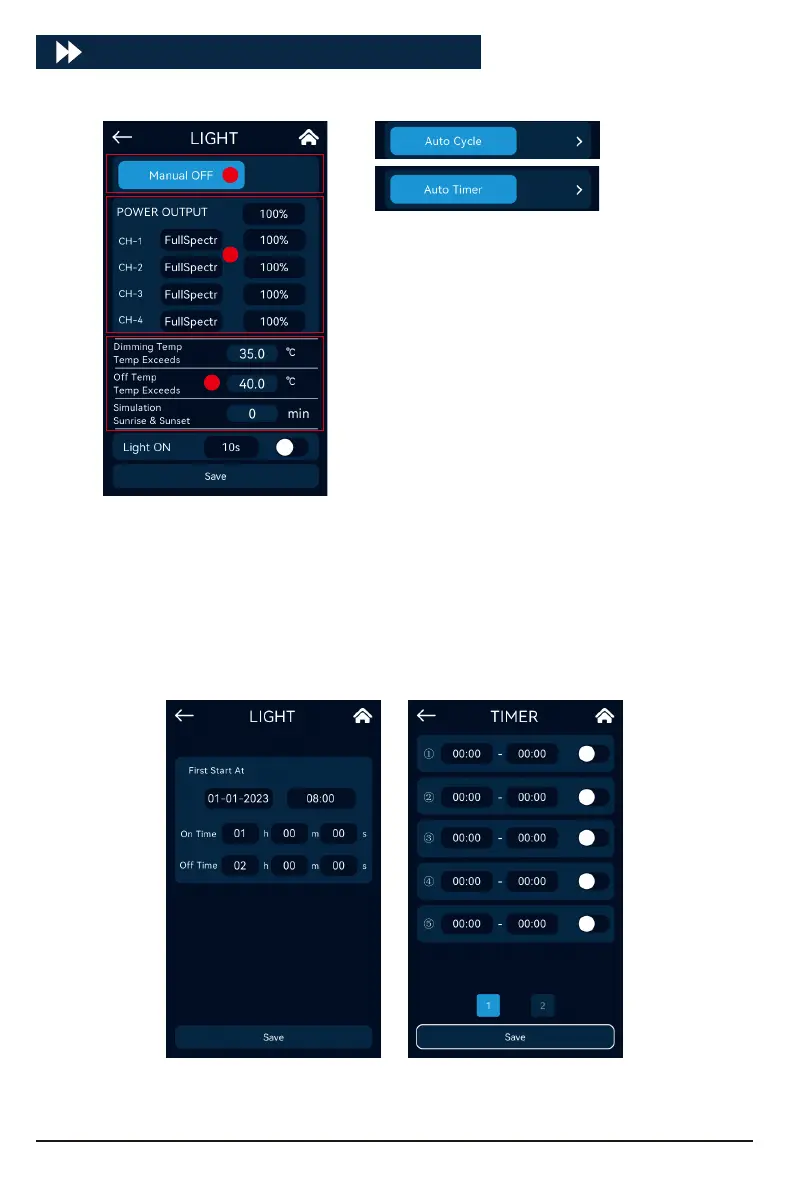 not be turned o. In timer mode, if the sta and end times are set, it indicates that the light is usual-