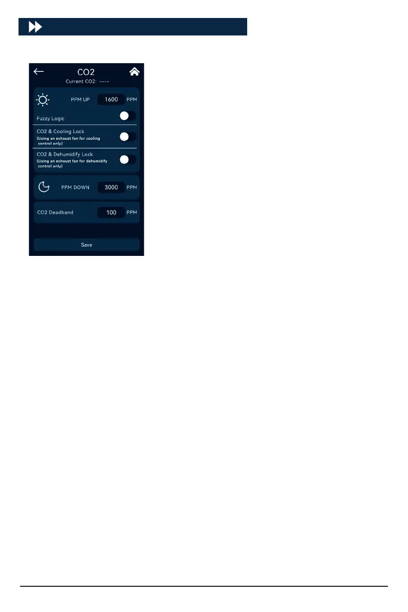 Turn o when CO2 value ≥ PPM UP target value + CO2 Deadband.