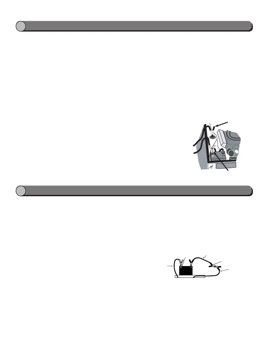 away from the battery as possible. Do not connect the clip to carburetor, fuel lines, or