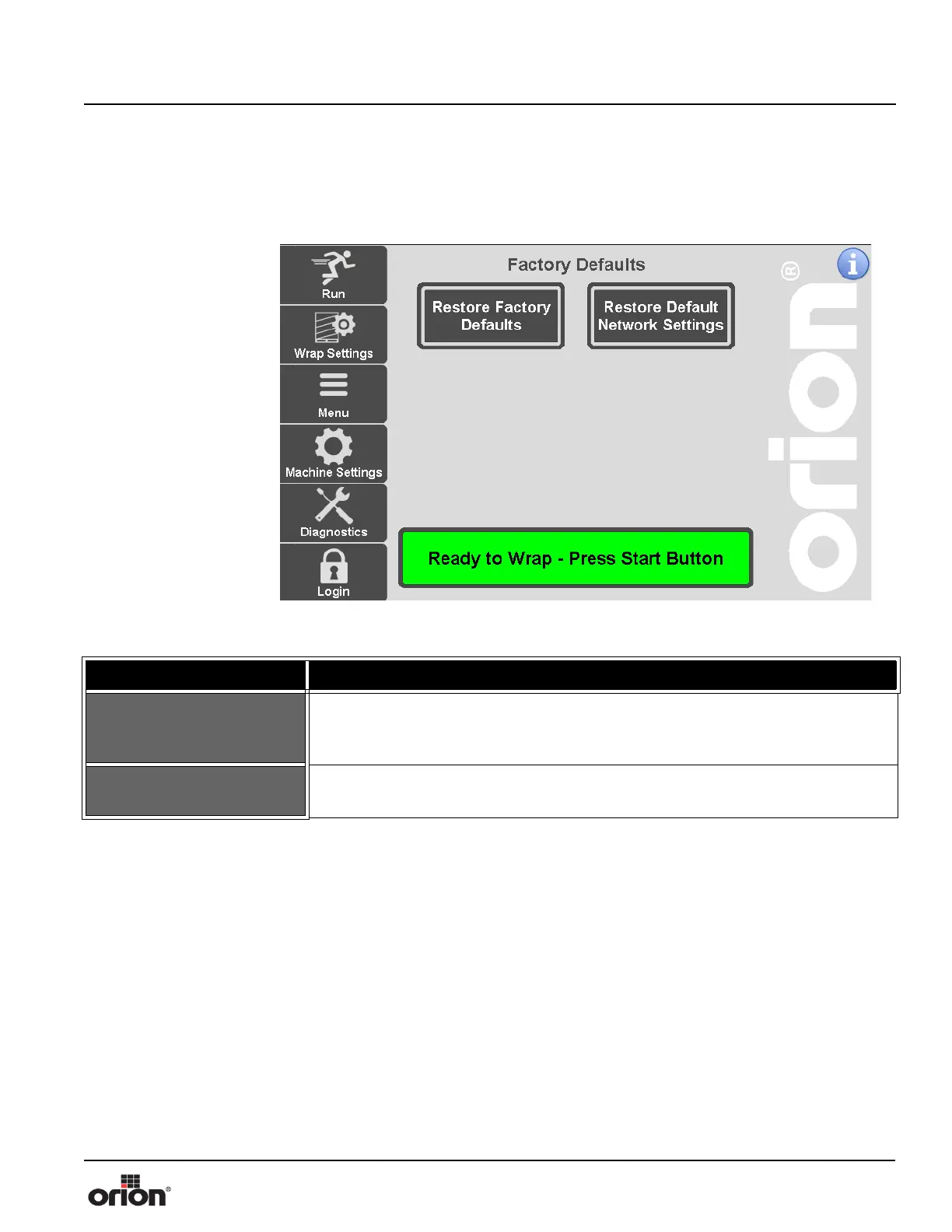 Table 3-19. The Factory Defaults Screen Button Descriptions