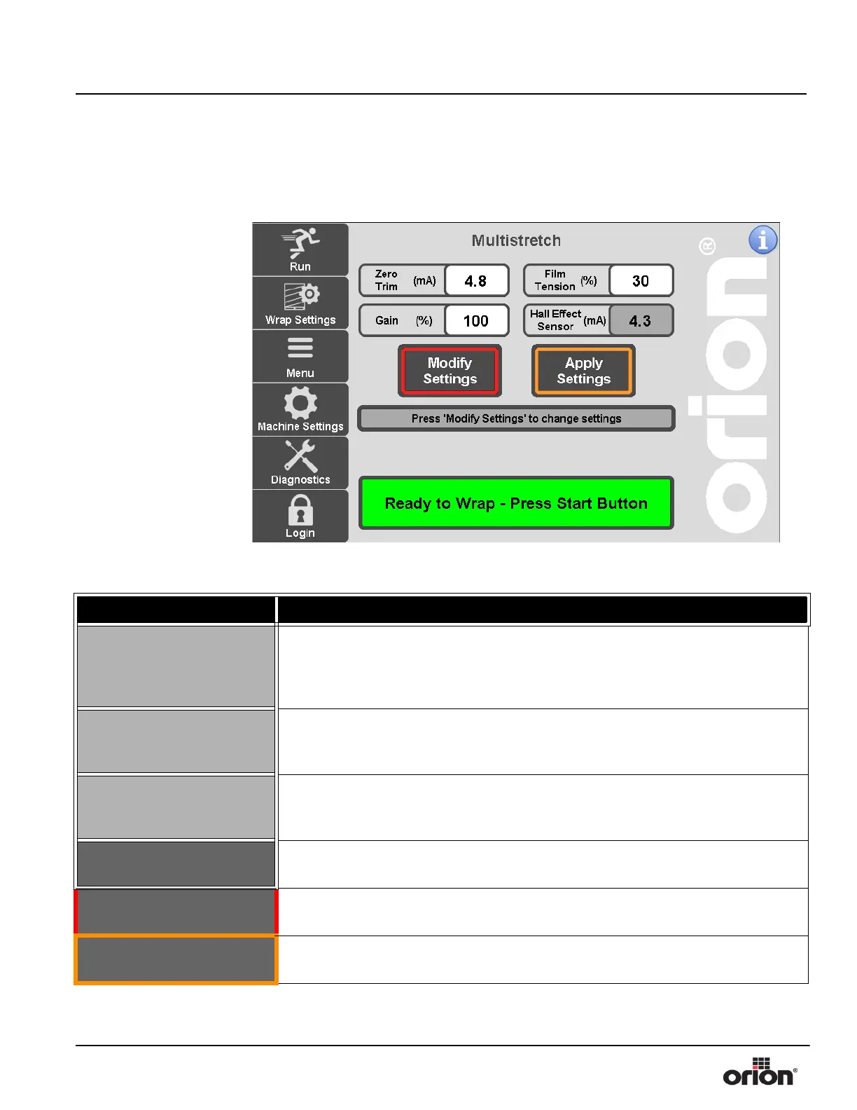 Press this button to modify the Film Tension datapoint, in terms of percentage. This