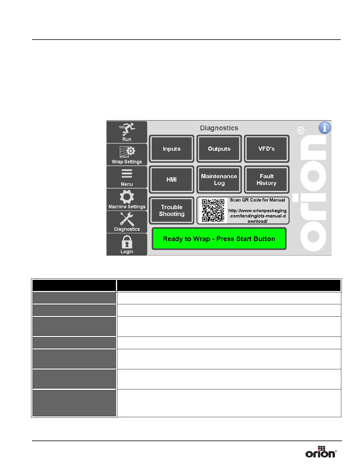This is the Diagnostics screen. This screen allows navigation to each of the Diagnostic