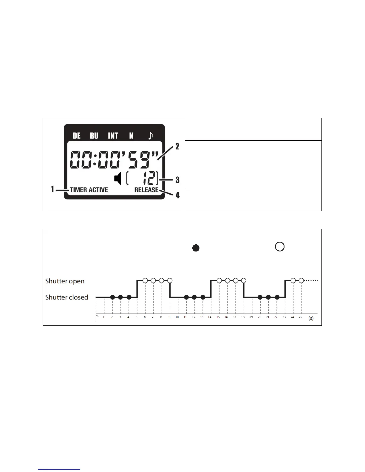 While the shutter is opened, the control panel will show the time remaining until the shutter closes,
