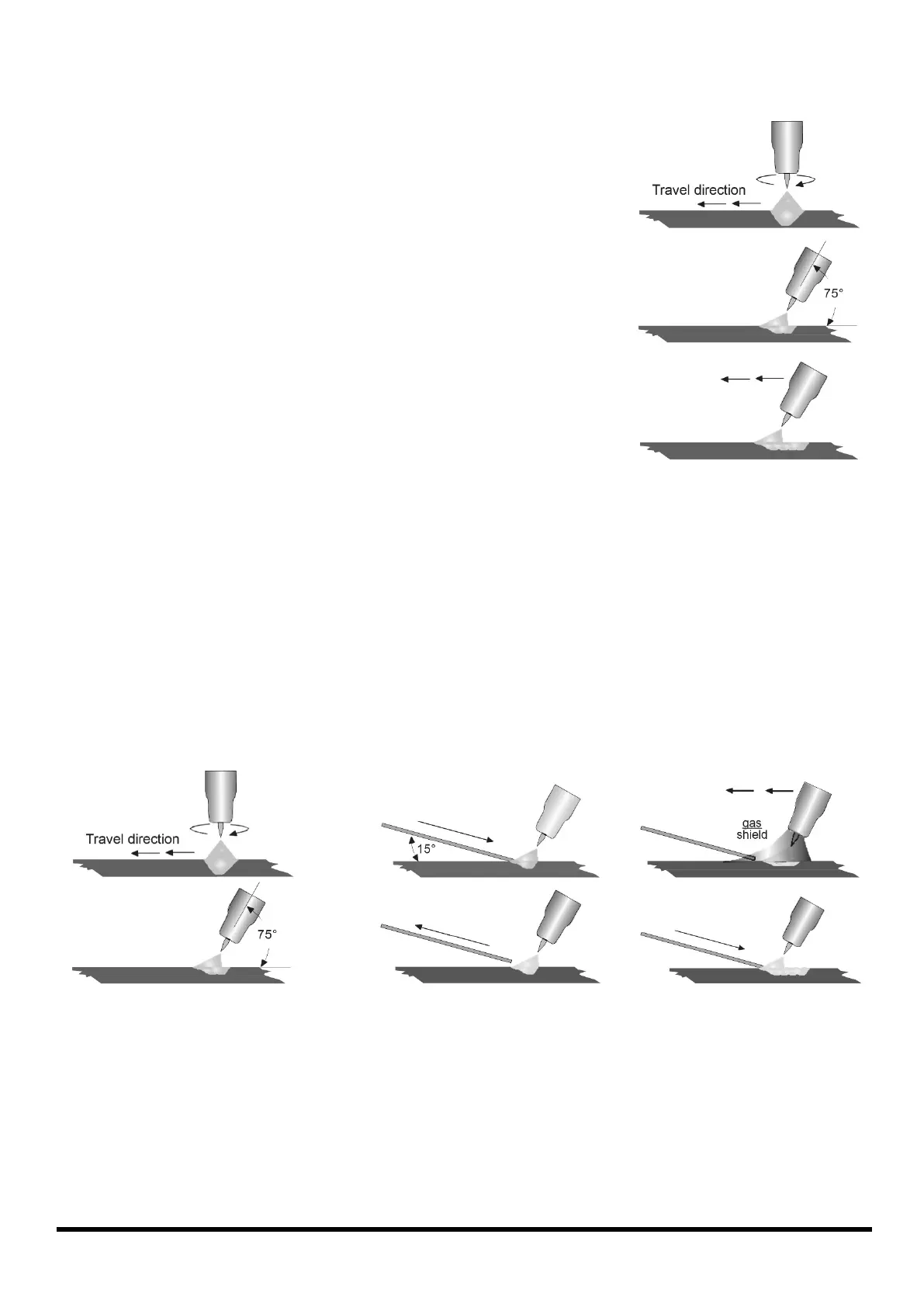 introduced to the leading edge of the weld pool. The filler wire is usually held at about a 15°