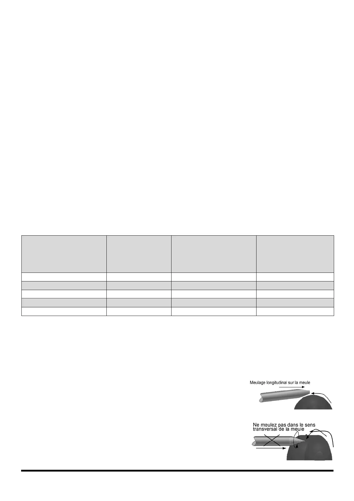 Utilisez toujours des meules au diamant afin de procéder au meulage et au découpage. Le