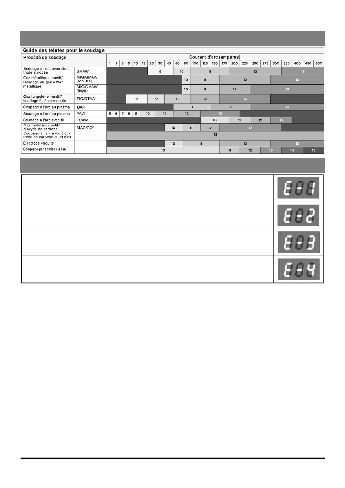 Le multimètre numérique affiche le message « E-1 » lorsque la soudeuse