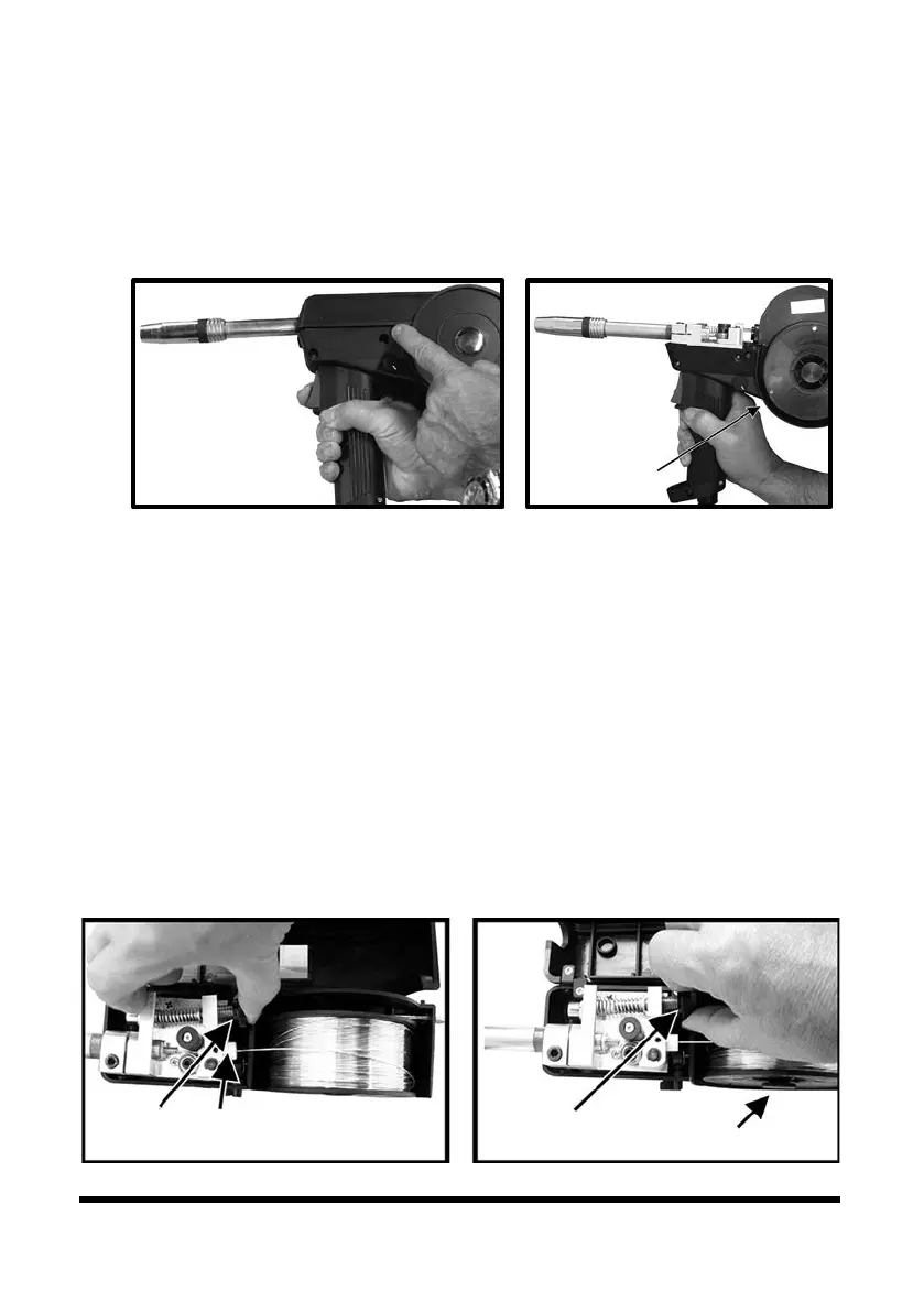 12. Alignez le fil dans la rainure du rouleau d'entraînement et