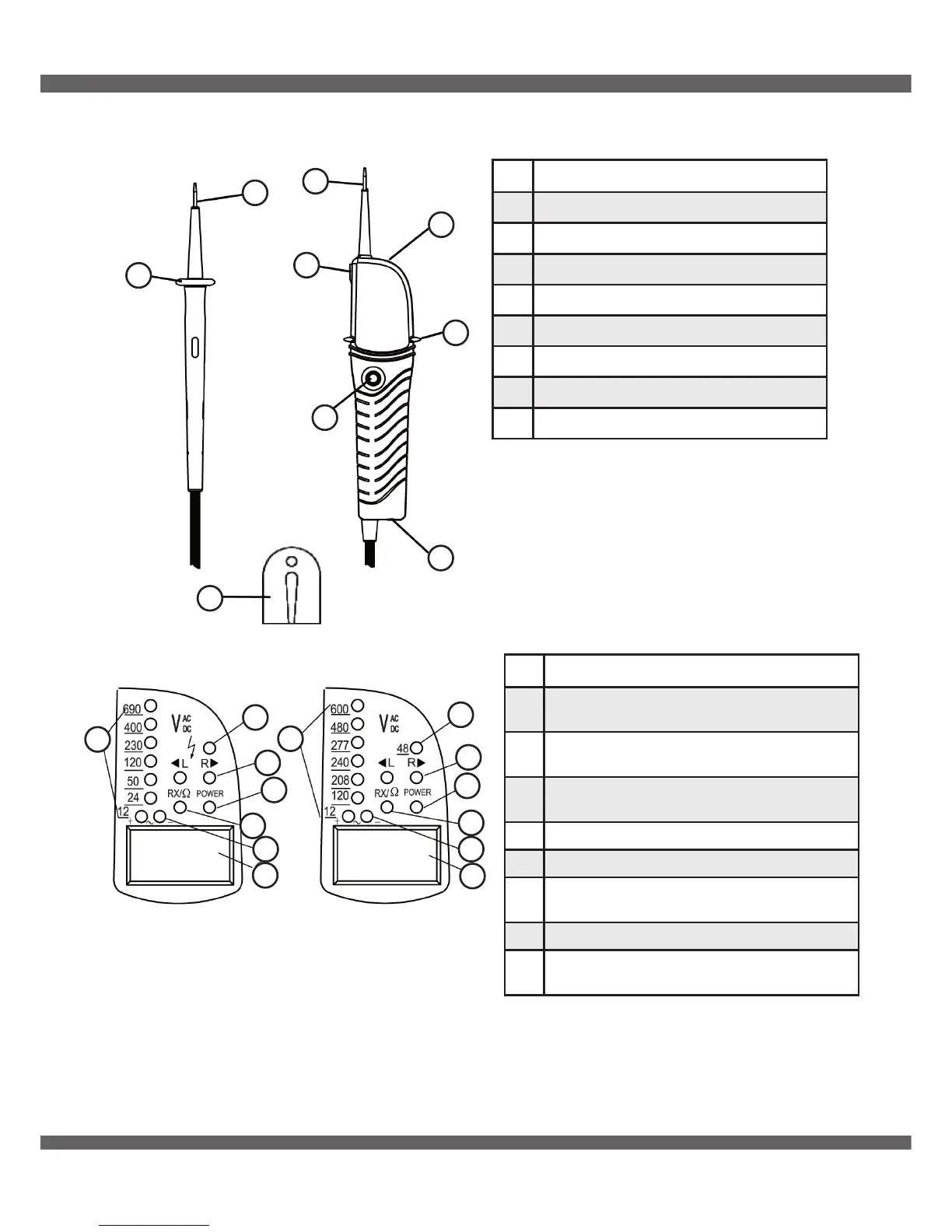 7 DEL pour essai de continuité / circuit sous tension