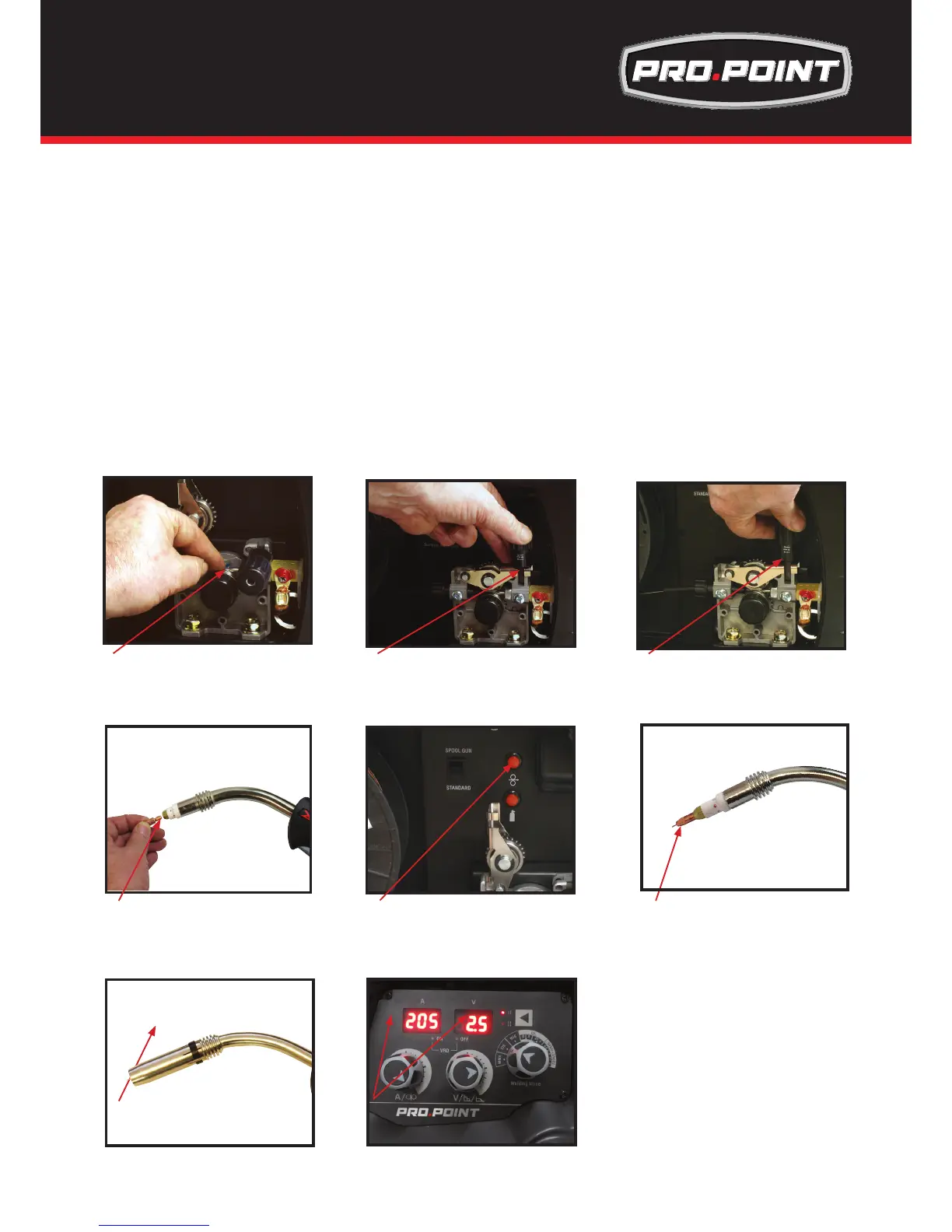 (9) Align the wire into the groove of the drive roller and close down the top roller making sure the wire is in