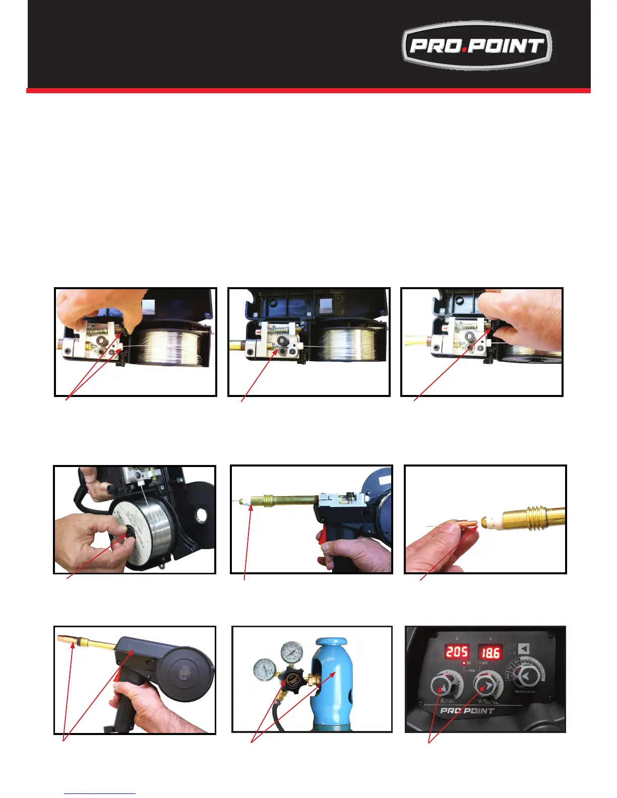 (14) Fit the correct sized contact tip and feed the wire through it, screw the contact tip into the tip holder of