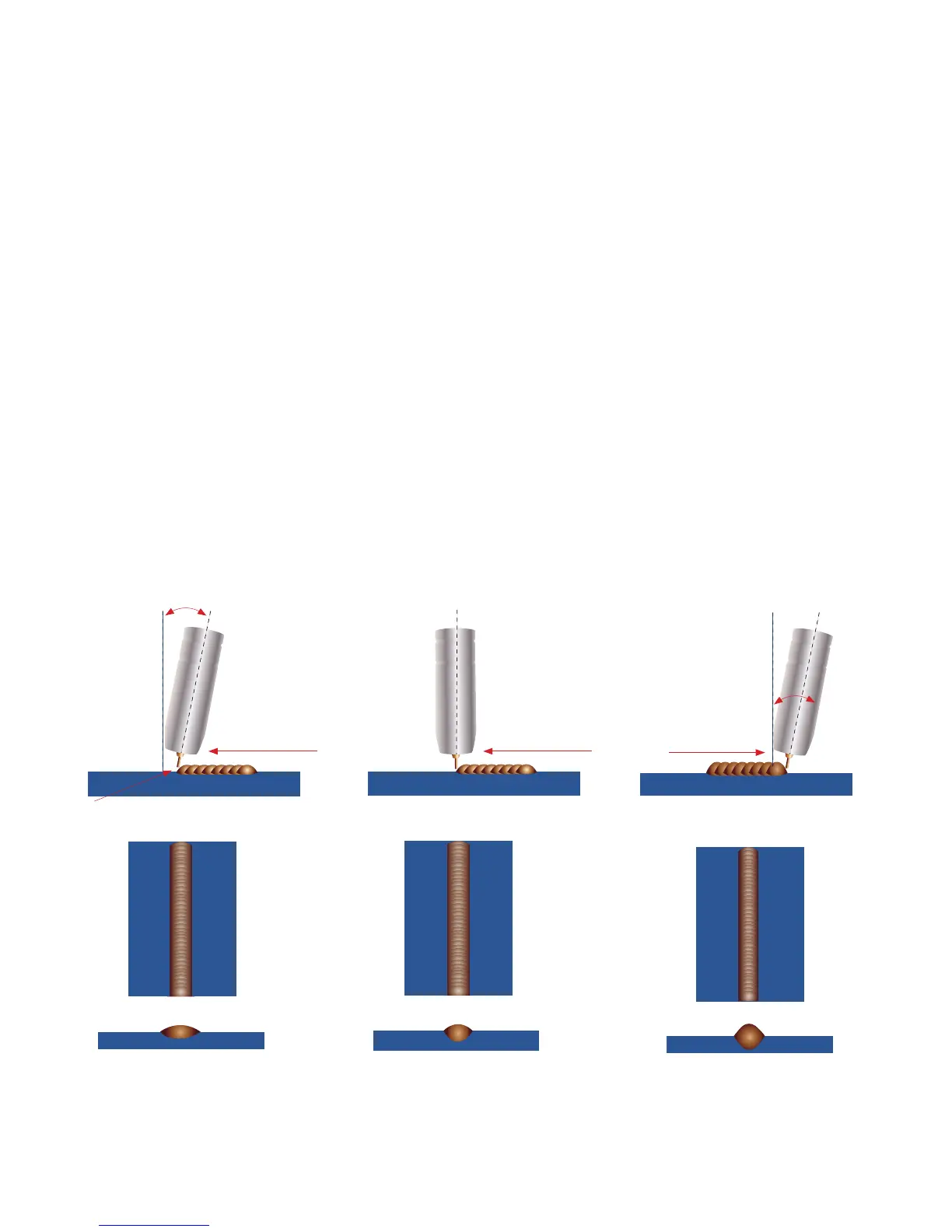 Good weld quality and weld prole depends on gun angle, direction of travel, electrode extension