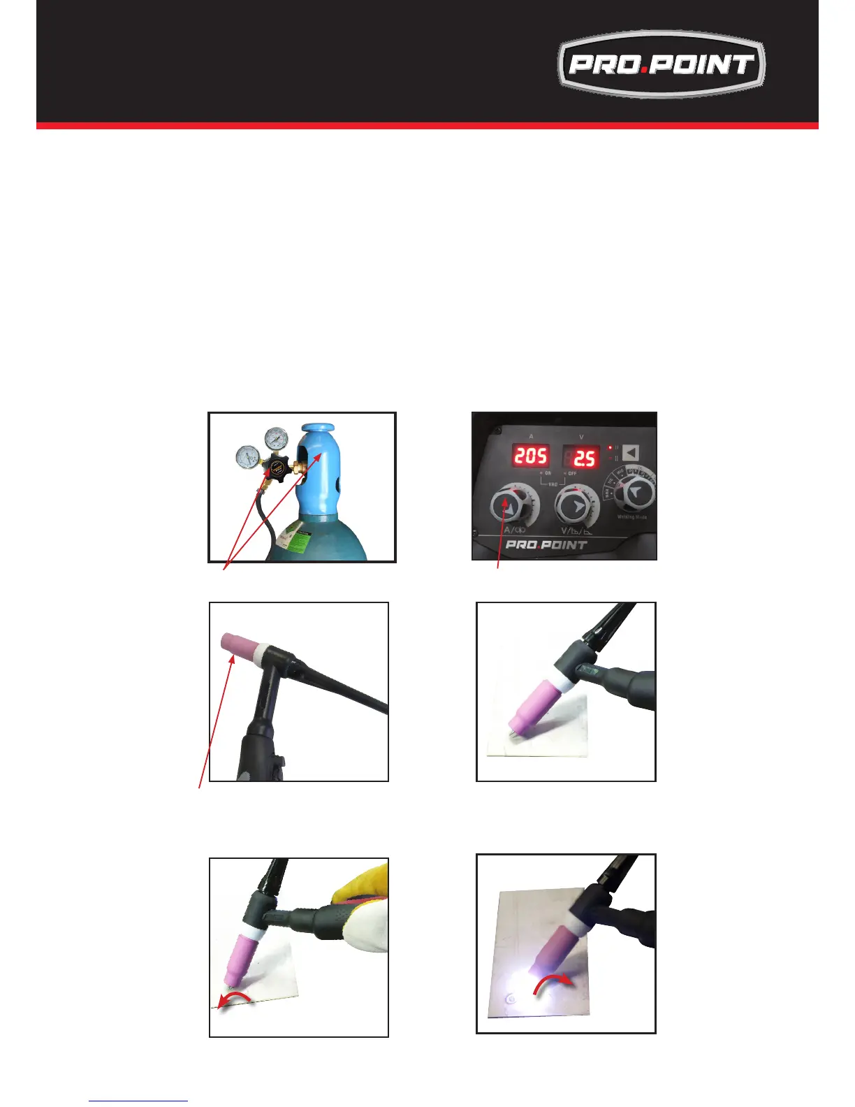 work piece. Press the trigger button on TIG torch to start the gas ow.