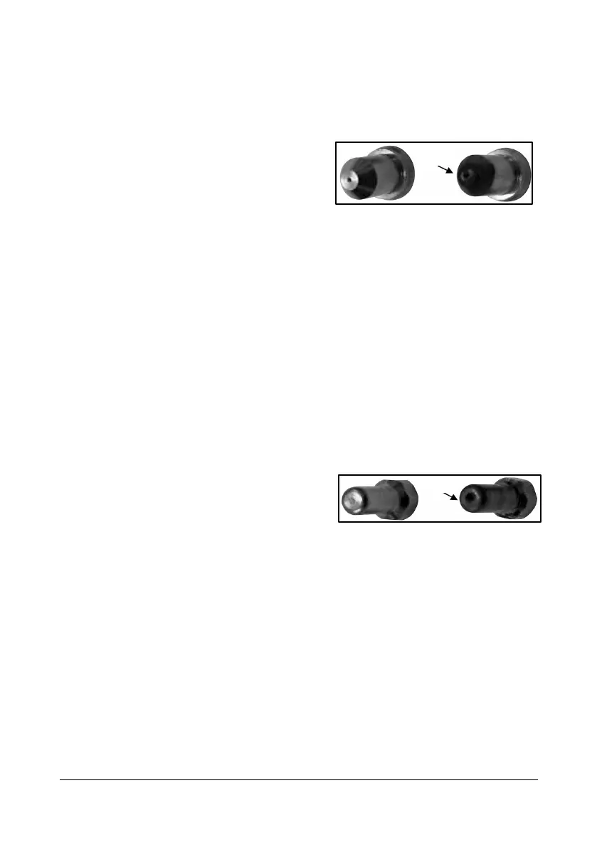 Un orifice usé ou endommagé sur la buse produira un jet de plasma déformé,