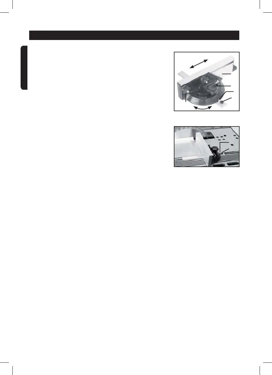 l’une des deux rainures de guidage sur le plateau de la scie.