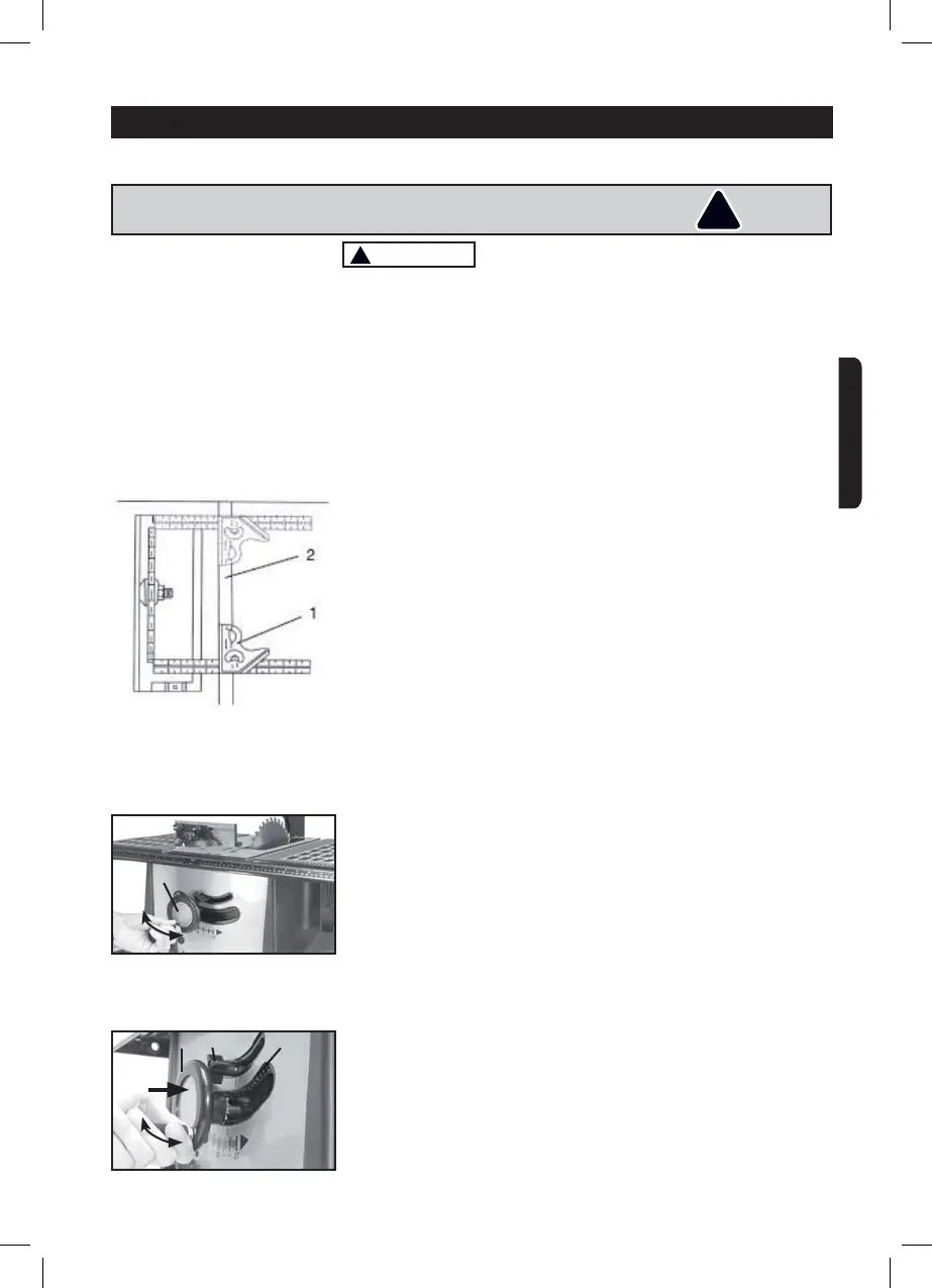 ning screw (2), push the hand wheel (1) towards the saw so that the
