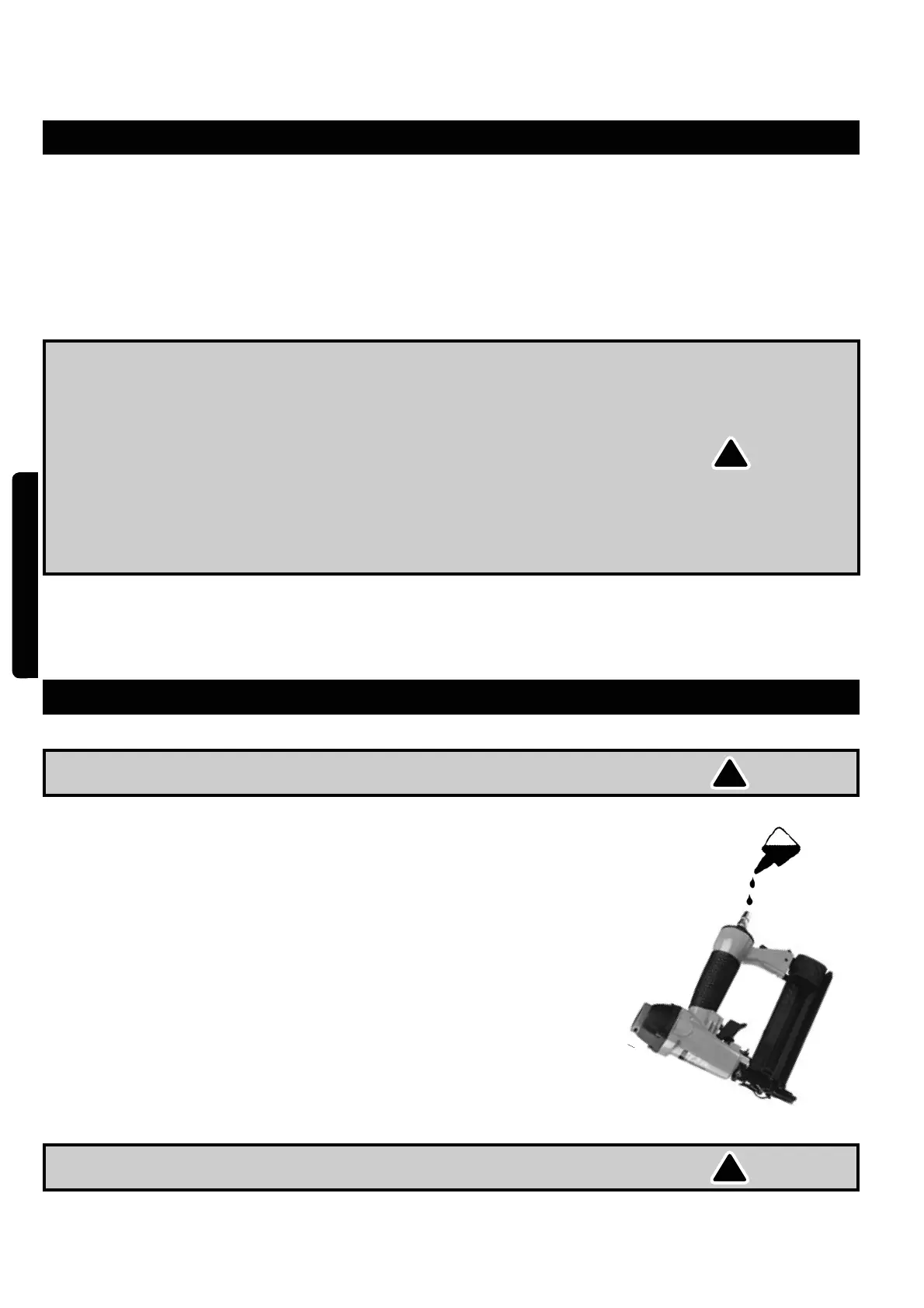 parts. Use only air tool oil. Do not use oil with detergents or other additives.