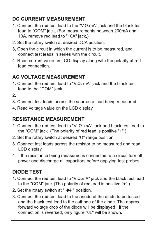 Pro's Kit MT-1210 - DC Current Measurement; AC Voltage Measurement; Resistance Measurement; Diode Test