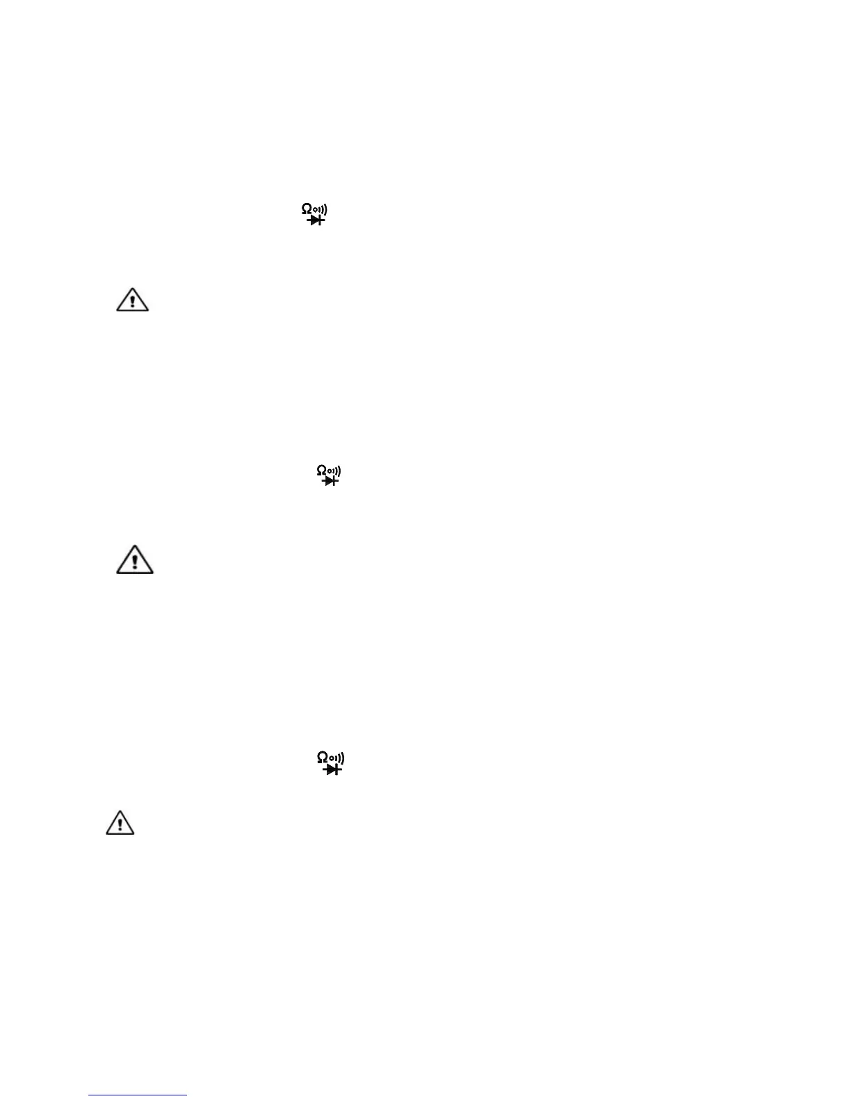 If the measured diode is open circuit or in reverse polarity, the instrument will display “OL”.